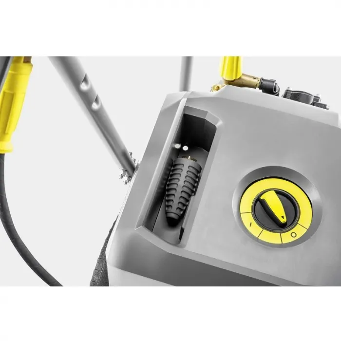 Уредът за почистване с високо налягане Super Class е снабден с пистолет за високо налягане Classic за машини от гамата HD Classic. Притежава първокласна закопчалка за бързо освобождаване EASY!Lock. Това я прави пет пъти по-бърза за настройка и прибиране, спестявайки време и проблеми. Интегриран воден филтър надеждно защитава помпата за високо налягане от частици мръсотия и замърсители, като по този начин удължава експлоатационния срок на машината.