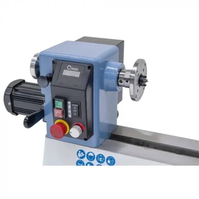 Дърводелският струг се отличава още със здрав шпиндел с прецизни лагери за висока концентричност. Цифровият дисплей позволява удобно регулиране на настройките на оборотите. Задният шпиндел на струга има отвор, който позволява обработката и на дълги детайли. Стругът за дърво се отличава със солидна лята конструкция за елиминиране на вибрациите и осигуряване на максимална точност при работа. Богатата гама от стандартни аксесоари (LED дисплей, безстепенно регулиране на скоростта и др.) прави този модел идеален избор за професионалните майстори. Предлага се в комплект с устройство за ляво-дясно въртене и стоманена опора, която е лесна за настройка към различни диаметри на детайла.
