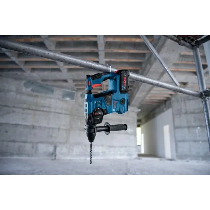 Този перфоратор е идеален за работа с бетон, камък и зидария. Съвместим е с всички батерии и зарядни устройства в системата Bosch Professional 18V. Машината разполага и с кука за съхранение и LED светлина. Акумулаторния перфоратор работи с напрежение на батерията 18.0 V. Машината притежава впечатляваща производителност с енергия на удара 3.3 J и безчетковия си мотор. За защитата на потребителя се грижат функциите Vibration Control и KickBack Control. Трите различни режима на работа (автоматичен, предпочитан, мек) съдействат за перфектен контрол и точна настройка. При наличие на Bluetooth модул (GCY 42) машината може да се свърже с приложението Toolbox на Bosch за персонализиране на настройките. Част от от обшираната гама функции за защита са контрол на вибрациите, контрол на обратния удар и съвместимост с GDE 18V-16 за пробиване без прах.