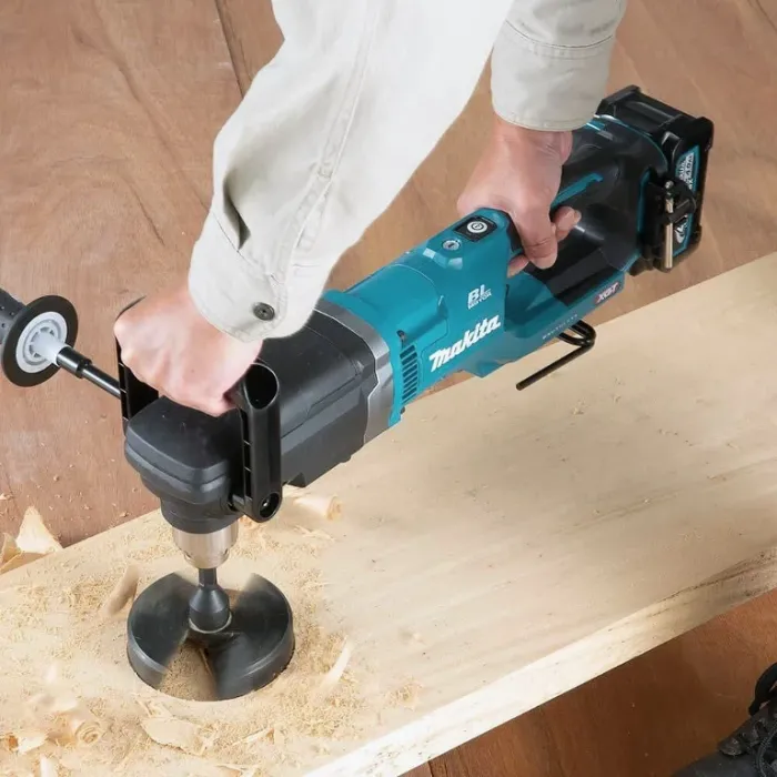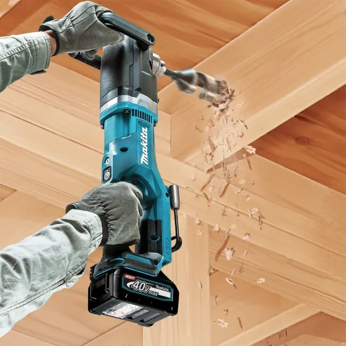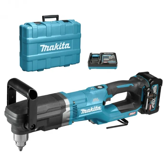 Бормашината е с безчетков мотор, която се захранва от 40 V батерия от серията XGT. Технологията ADT регулира въртящия момент и скоростта според състоянието на натоварване. Технологията XPT предлага максимална защита срещу прах, отломки и течности за оптимална работа при екстремни условия. Ограничителят на въртящия момент спира машината, ако свредлото се заклини. Акумулаторната ъглова бормашина е с мека гумена дръжка, която абсорбира вибрациите и осигурява удобна работа. D-образната ръкохватката може да се намества между 0° и 112.5°. Максималният й въртящ момент е 136 Nm и работи със скорост 0-1500 об./мин, като има възможност за задаване на 2 скорости. Патронникът е с обхват 2-13 мм. Функцията за плавен старт постепенно увеличава скоростта, за да елиминира шока при стартиране. Двойна LED светлина за работа с функции за предварително и последващо светене осветява работната зона. Интегрираната кука позволява окачането на инструмента на греди, тръби и скелета.