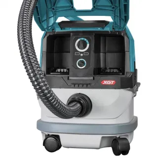Дебитът на акумулаторната прахосмукачка е 2800 л/мин, мощността може да се регулира в 5 степени, а контейнерът е с капацитет 8 л. Професионалната прахосмукачка е оборудвана с безчетков мотор, който се захранва от 40 V батерия от серията XGT. Благодарение на технологията eXtreme Protection Technology (XPT) е защитена срещу проникване на прах и влага, и може да се използва и на открито. Акумулаторната прахосмукачка е отлично решение за почистване в ситуации, в които от време на време трябва да се засмукват мокри вещества и за места, където не е удачно използването на кабел, като магазини, офиси, приемни и т.н. В тялото е възможно поставянето на 2 батерии, което значително увеличава времето за работа.