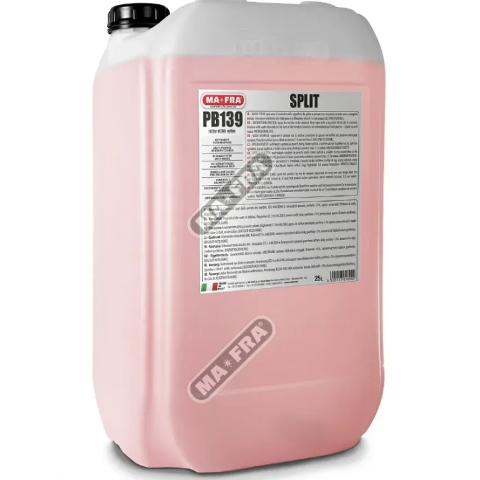 Многофункционален препарат, идеален за почистване на стъкла, пластмасови и дървени елементи, метални или хромирани интериорни и екстериорни повърхности, LCD екрани и др. Неговата деликатна, но мощна формула, е съчетана с обезмасляващо и дълбоко почистващ ефект. SPLIT е с нова формула, неутрално pH и 100% натурални съставки.