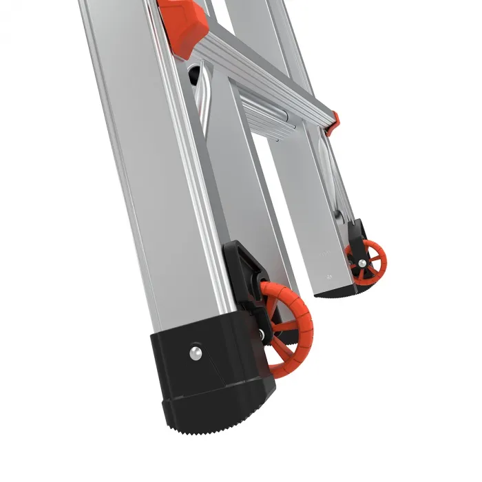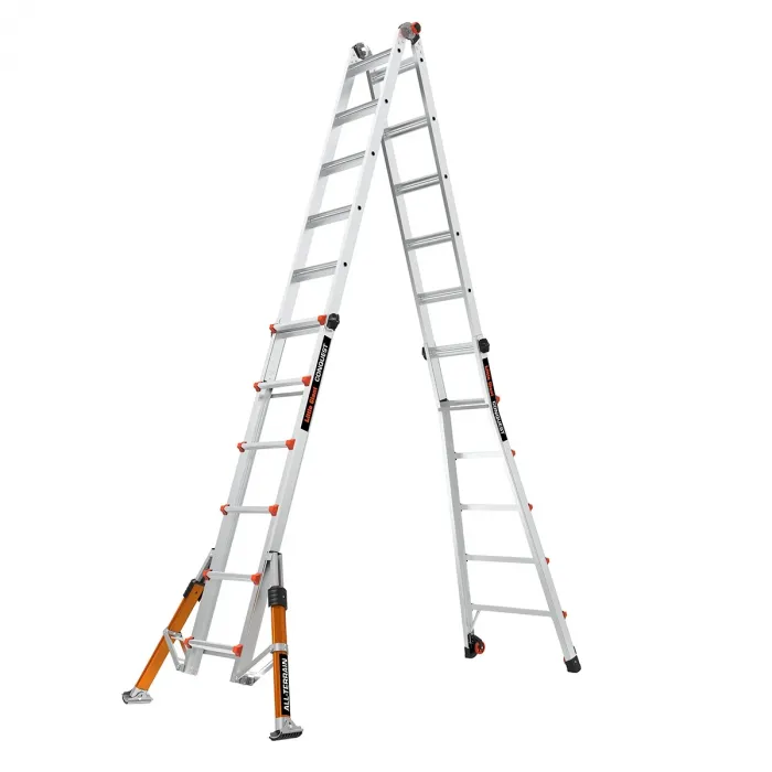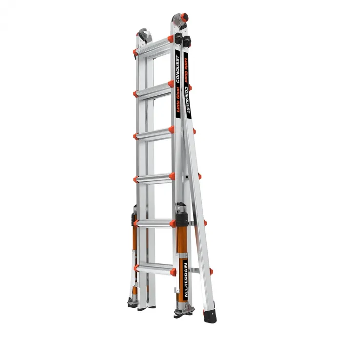 Снабдена е с множество функции за безопасност, включително странично монтирани нивелиращи се стабилизатори, които могат да се ползват независимо един от друг, без значение на какъв терен. Колелцата Tip & Glide™ улесняват местенето на стълбата от място на място по време на работа. Conquest™ All-Terrain е проектирана да се използва в различни позиции: А-Стълба, разпъната А-Стълба, 90-градуса, удължена, позиция за използване върху стълбище или дори скеле. Сериозната работа изисква сериозен инструмент. Стълбата Little Giant® Conquest™ All-Terrain ще ви помогне да се справите с всички трудни задачи.