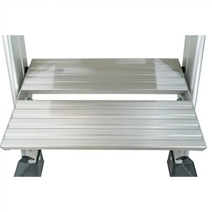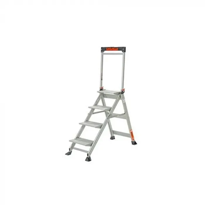 Подходяща както за дейности изискващи постоянно качване и слизане, така и за продължително стоене на височина. Стълба, съчетаваща лекота, стабилност и здравина в едно. С широките си 21.5 см противохлъзгащи стъпала и дизайн наподобяващ стълбище, Little Giant® Jumbo Step™ осигурява изключителен комфорт и усещане за стабилност.