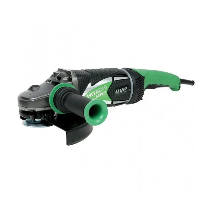 Ъглошлайф Hitachi G23SCY 2400W - е мощен инструмент, който съчетава мощност и висока производителност с безопасност и удобство при използването. Този ъглошлайф е оборудван с най-добрите в класа двигатели с мощност от 2400 вата, което е в състояние да изпълнява до 6000 оборота в минута. Ъглошлайф на Hitachi съчетава специална функционалност и удобство. Hitachi G23SCY е удобен за използване, както и предоставя безопасност на потребителя. За рязане на метални профили, тръби и ламарина, керамични и каменни плочи, почиства ръжда, маха стари бои, шлифова грубо и може да изглаждат заваръчни шевове и други неравности. Голяма издръжливост на претоварване. Компактен и лек. Подвижният свързващ механизъм на дръжката с антивибрационната система намалява отрицателното въздействие на вибрациите върху потребителя и го кара да работи с инструмента по-малко уморително.