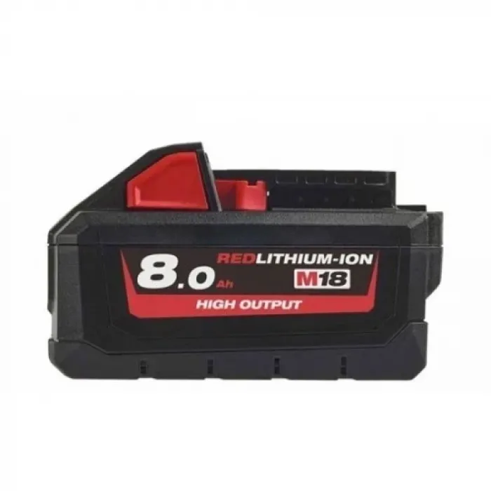Акумулаторната батерия работи при ниски температури до -29 градуса. Акумулаторната батерия M18HB8 има напрежение 18 V и капацитет 8 Ah. Батерията е подходяща е за всички акумулаторни инструменти Milwaukee M18. Има защита от претоварване и дисплей, изобразяващ оставащия заряд на батерията.