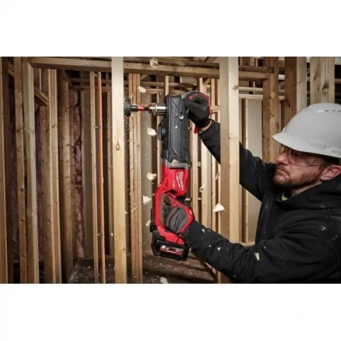 Компактният дизайн на бормашината позволява работа в ограничени пространства, а изцяло металния корпус и 13-милиметровия шпонков патронник гарантират висока издръжливост. Ъгловата акумулаторна бормашина разполага с механичен съединител, който предпазва инструмента в случай на блокиране, както и с бордови индикатор за оставащия заряд и LED светлина. Акумулаторната ъглова бормашина се отличава с изключително дълго време на работа, като може да пробие до 100 дупки с 65 mm свредло в дърво. Снабдена е с безчетков мотор POWERSTATE™, който осигурява постоянна мощност при натоварване за постигане на максимален диаметър на пробиване от 152 mm. Безкабелната бормашина работи с всички батерии от серията MILWAUKEE® M18™.