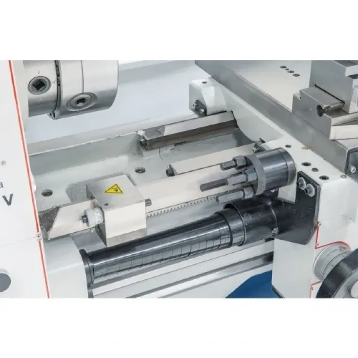 Стругът разполага също така със закалени и полирани зъбни колела и валове, дори и в захранващия блок. Подвижният мост пък позволява обработка и на извънгабаритни детайли. Универсален струг за метал, който се отличава със солидна конструкция и практичен дизайн. Стругът има централно разположени, практични контроли за подаване и нарязване на резба (с водещ винт и подаващ лост), както и съвременен основен шпинделен лагер с висококачествени ъглови сачмени лагери.Стандартното оборудване, което прави този модел наистина универсален за технически училища, сервизи и обучителни работилници, включва всички основни аксесоари като 3-осно цифрово отчитане, опори, LED осветление и др. Освен това, този металообработващ струг се характеризира с "постоянна скорост на рязане", позволяваща отлични резултати при обработка на детайли с непостоянни диаметри.