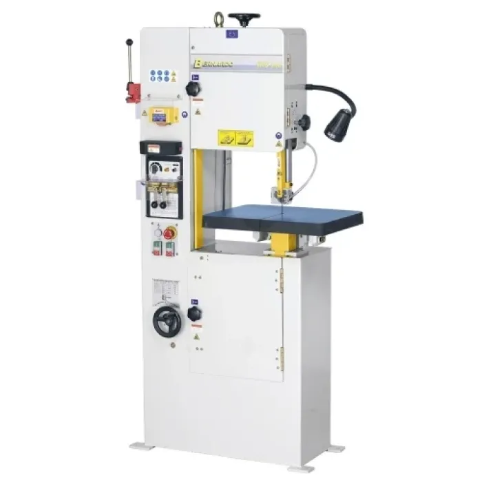Машината е оборудвана с безстепенно регулиране на скоростта на рязане. Масата има възможност за наклон на 15° в 4 посоки за постигане на необходимата форма на детайла. Същата е с масивна чугунена конструкция с голяма площ осигурявяща безопастна експлоатация. Лентоотрезната машина е предназначена за професионална работа, тя е здрава и осигурява работа без вибрациии. Машината представлява вертикална лентоотрезна машина отличаваща се с масивна конструкция и висока прецизност при рязане на детайли с неправилни форми от материали като пластмаса, стомана и цветни метали.