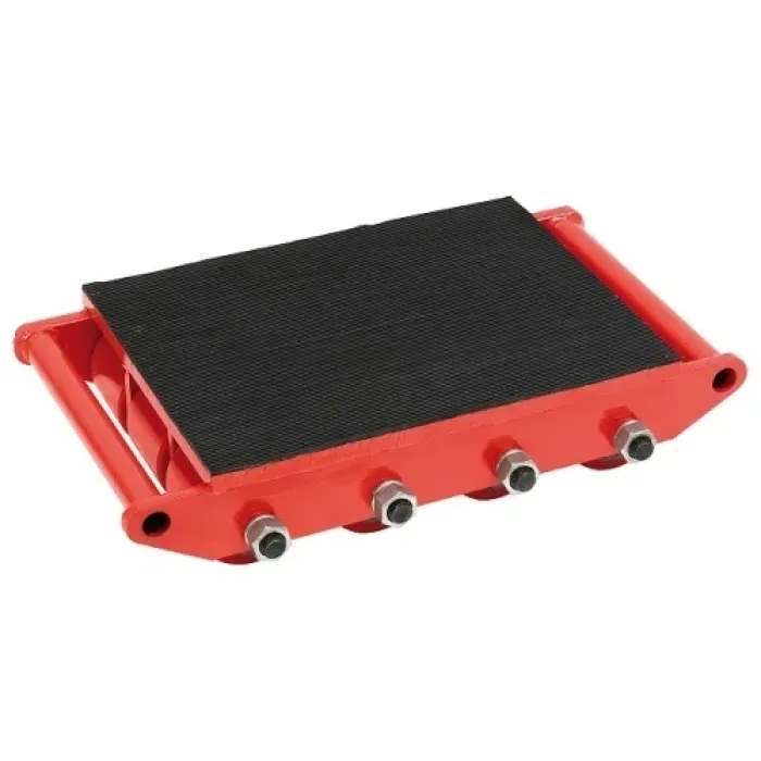 Товарната ролкова количка се използва за транспортиране на тежки машини и съоръжения по равно подово покритие на кратки разстояния. Допълнително може да се използва лост за повдигане и транспортиране на обекта. Ролковата платформа има гумено противоплъзгащо покритие, като товароносимостта и е 18000 кг.