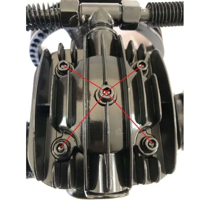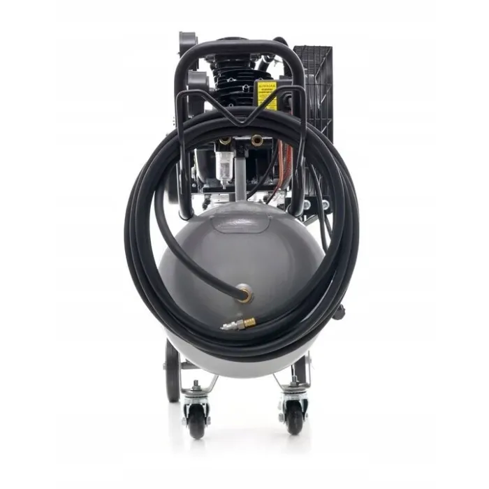 Ергономичен - разполага с редуктор за налягане, оборудван с иновативен механизъм за регулиране на долното и горното налягане, 2 големи метални манометъра, разположени на компресора в позиция, която улеснява отчитането на параметрите, и кран за източване, който е лесен за използване