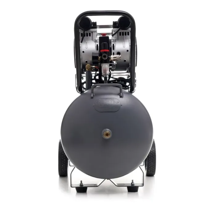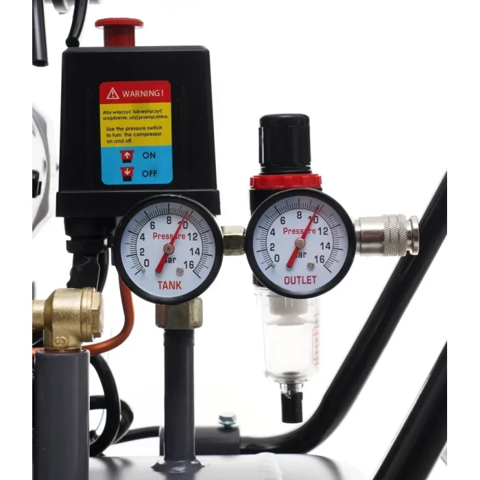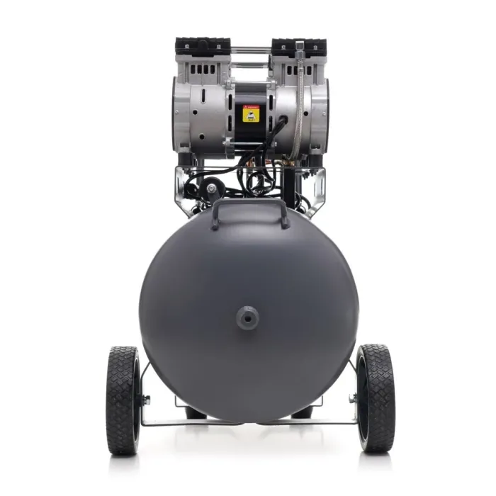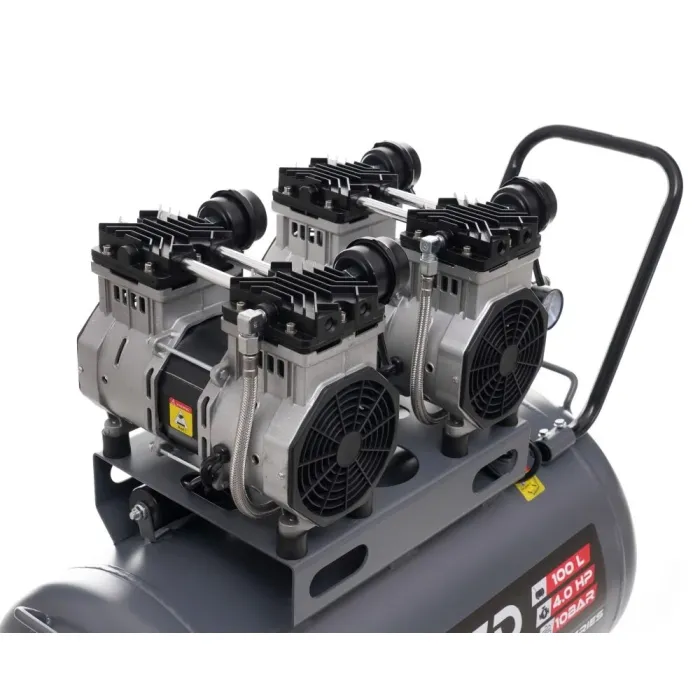 Тих компресор без масло - професионален източник на чист въздух без масло. Надеждната и тиха помпа може успешно да се постави в офис, учебна стая или до машина, без да влошава дискомфорта, причинен от шумна работа. Главите са оборудвани с въздушен филтър с ефективна вентилационна система - това решение ви позволява да постигнете максимална ефективност от сравнително малък компресор и отделни предпазни клапани.