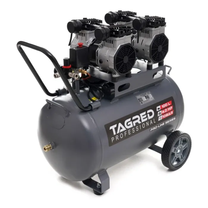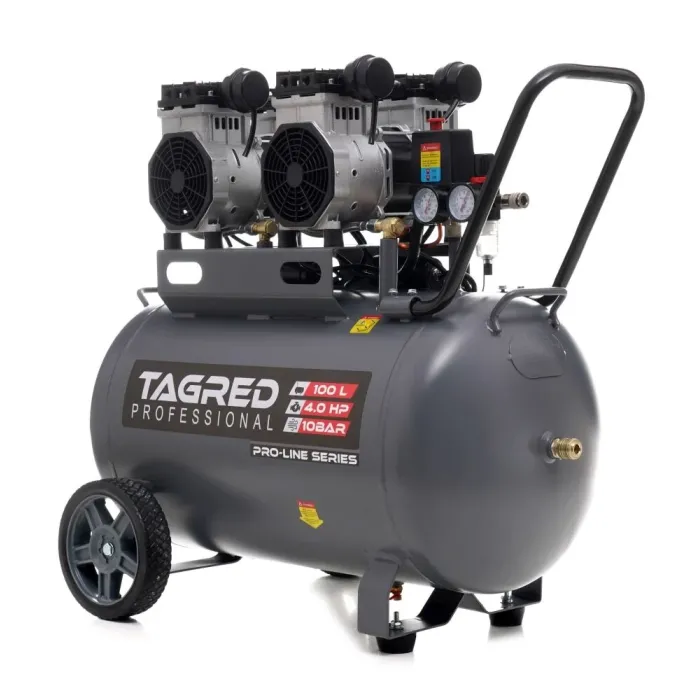 Безмасленият компресор TAGRED използва функционален и практически неизискващ поддръжка блок с бутало и диафрагма. Използваното решение прави въздушния компресор много тих и ефективен, може да се използва както в помощни помещения, така и у дома.