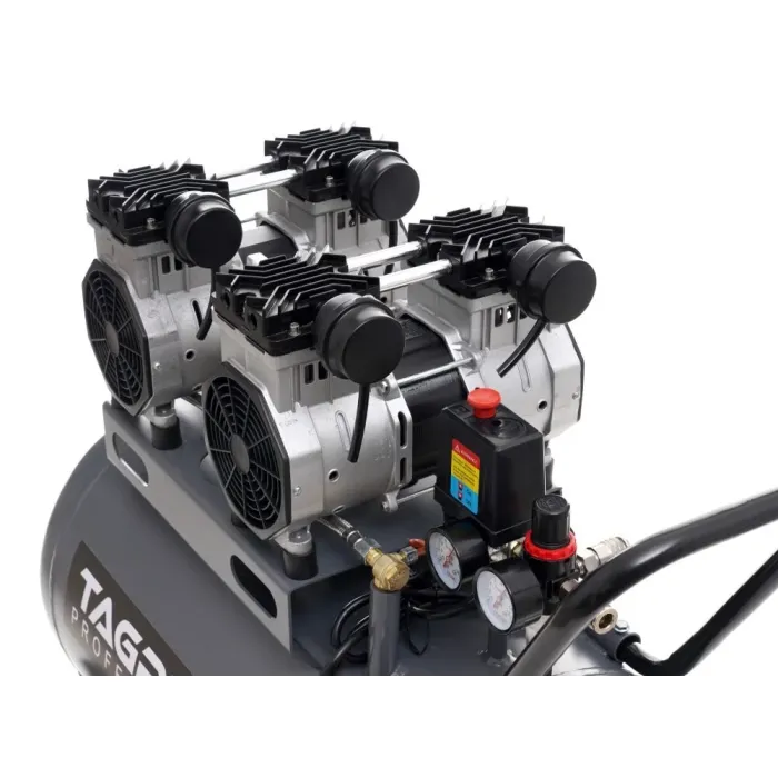 Висока производителност на работа, безопасност и комфорт - удобството и лекотата на използване са само част от предимствата на най-новата линия безмаслени компресори TAGRED PRO LINE! Безмаслените компресори TAGRED са необходими, когато сгъстеният въздух не може да бъде замърсен с масло. Тези компресори работят много по-тихо, по-малки са и по-леки и следователно по-мобилни от традиционните маслени компресори.
