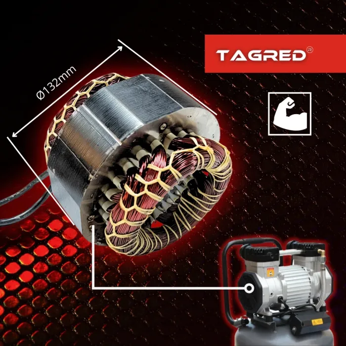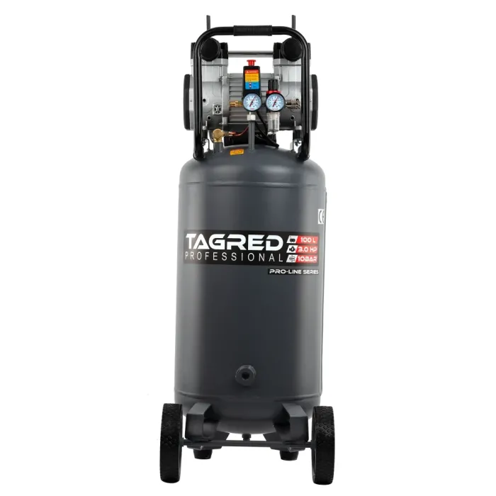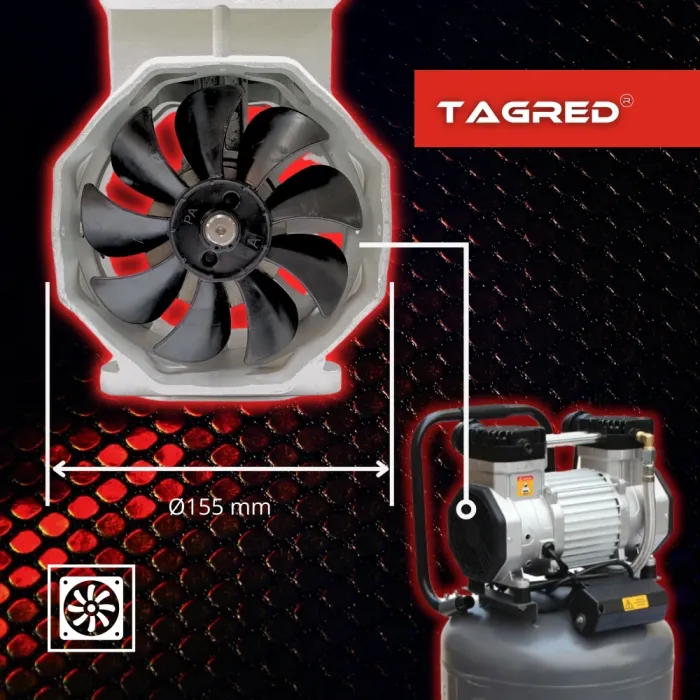 Безмасленият компресор TAGRED използва функционален и практически неизискващ поддръжка блок с бутало и диафрагма. Използваното решение прави въздушния компресор много тих и ефективен, може да се използва както в помощни помещения, така и у дома.