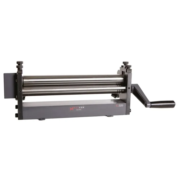 С помощта на жлебовете телта може да се навие в дъги или кръгове. Ролките са подходящи за формоване на материали с ширина до 320 мм и дебелина до 1 мм. Ръчна манивела завърта ролките, докато ламарината се подава. Копчето регулира разстоянието между ролките според дебелината на материала. Горната ролка ви позволява бързо да премахнете готовия елемент за лесна поддръжка.