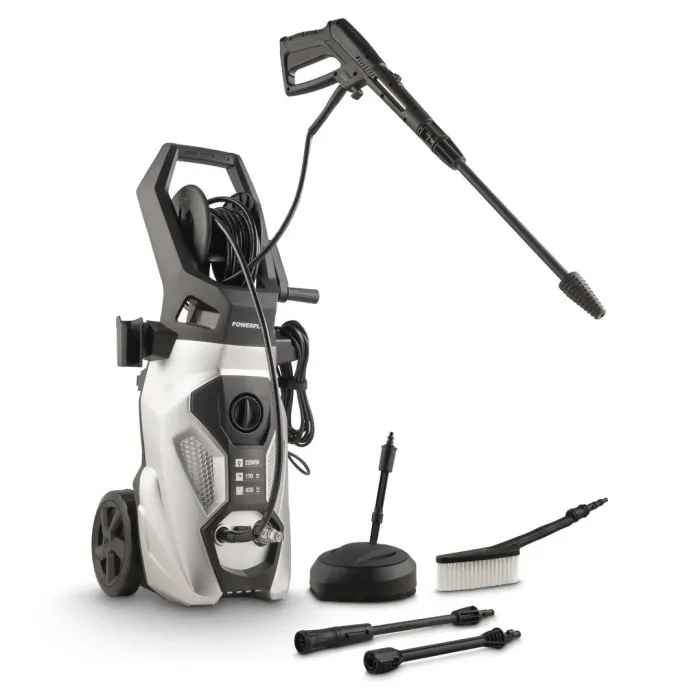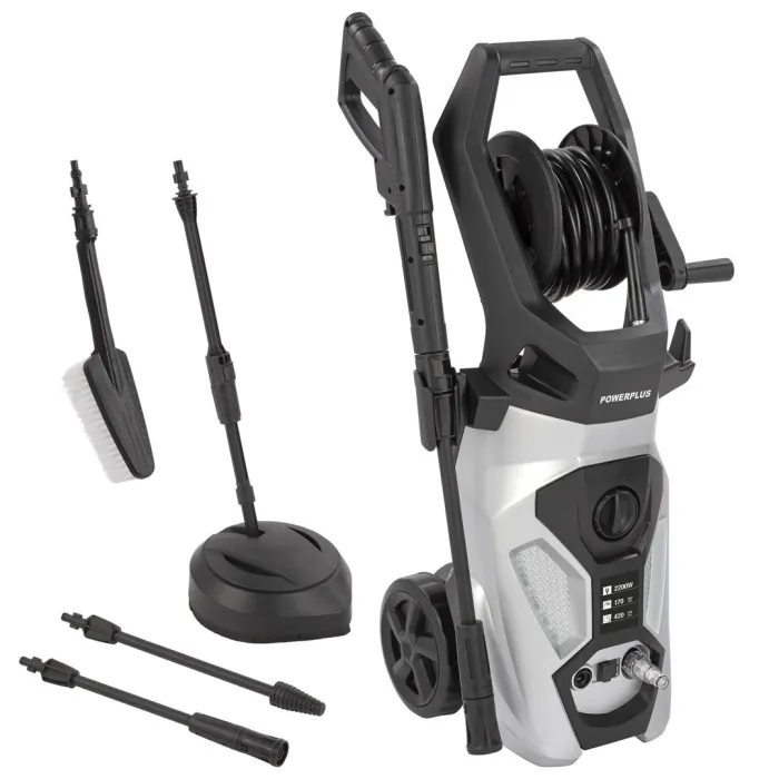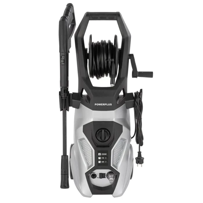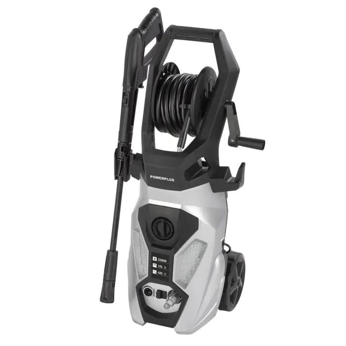 Дори и най-упоритите замърсявания нямат шанс срещу тази машина за миене под високо налягане, оборудвана с мощен 2200 W мотор. Този уред за почистване под високо налягане Powerplus е истински универсален с вграден резервоар за сапун, който ви позволява да използвате и сапун или други препарати. При максимално водно налягане от 170 бара, тази машина за почистване под налягане е перфектна за най-тежките дейности по почистване, напр. големи повърхности или премахване на изключително упорити замърсявания.