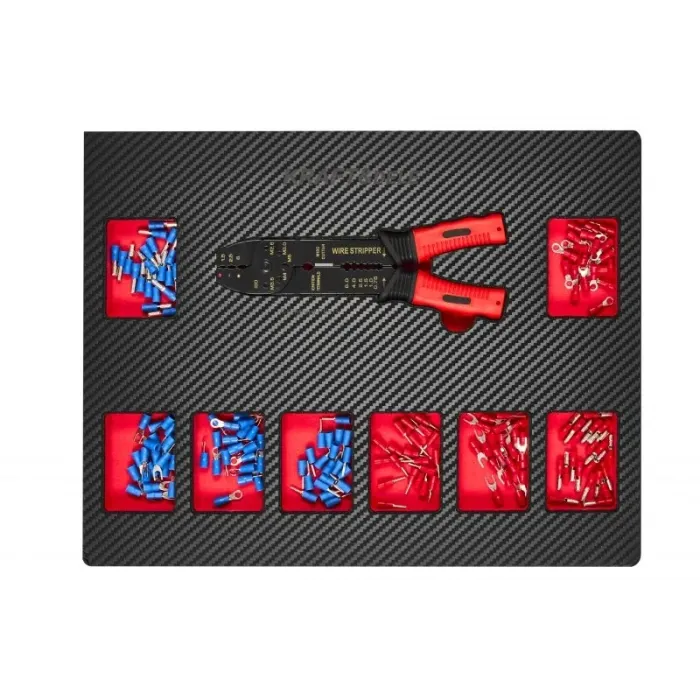 Шкафът е снабден с гумени брони, за да се предотврати повреда на каросерията на автомобила в случай на случаен удар. Системата за заключване на чекмеджетата позволява отваряне на само едно чекмедже. Всяко чекмедже е монтирано на носещи водачи, което прави отварянето им плавно, тихо и издръжливо. Всички ключове са изработени от CrV (хром-ванадиева) стомана. Количката за инструменти е незаменим продукт във всеки автосервиз и автосервиз. Шкафът е оборудван с набор от инструменти, състоящ се от цели 541 елемента. Големи колела, оборудвани с автоматично заключване и спирачка, осигуряващи безопасност при преместване на шкафа дори при малки наклони.