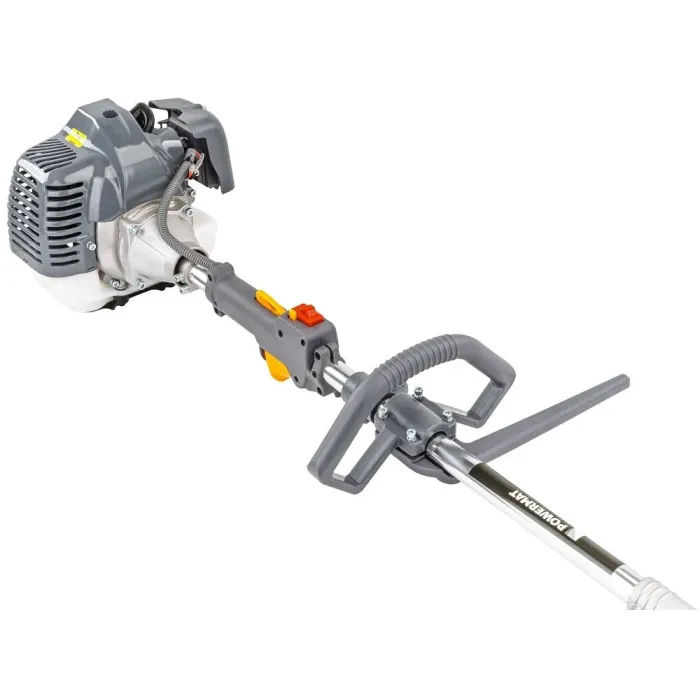 Ергономичната дръжка, антивибрационната система и допълнителната презрамка минимизират умората и повишават безопасността на потребителя. Бързата смяна на приставката без инструменти и възможността за сгъване на устройството улесняват транспортирането и съхранението. Бензинов градински инструмент 4в1, който е оборудван с двутактов двигател с обем 42 cm³ и мощност 4 HP, което осигурява висока ефективност на работа. Устройството съчетава функциите на коса, тример, моторен трион и ножица за жив плет, което позволява широк спектър от приложения.