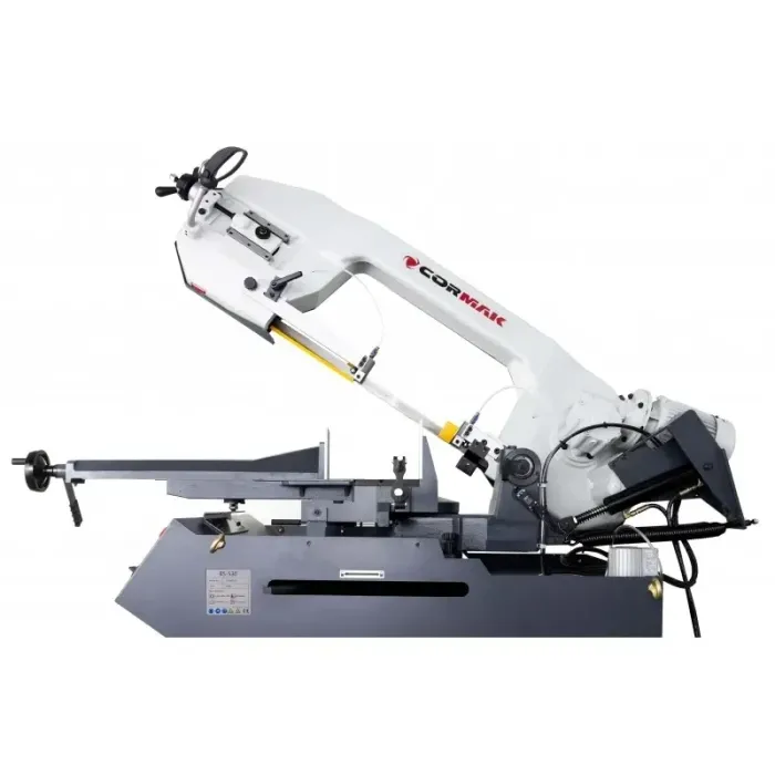 ощен лентов трион, оборудван с подвижно рамо, което може да се върти от -45° до +60°, преносимо менгеме с бързо заключване, тензодатчик за опъна на режещата лента и хидравлично спускащо се рамо с плавно регулиране. Допълнително оборудван с ергономично проектиран контролен панел, осигуряващ безопасност и комфорт при работа. Максималната ширина на косене е 490 мм.
