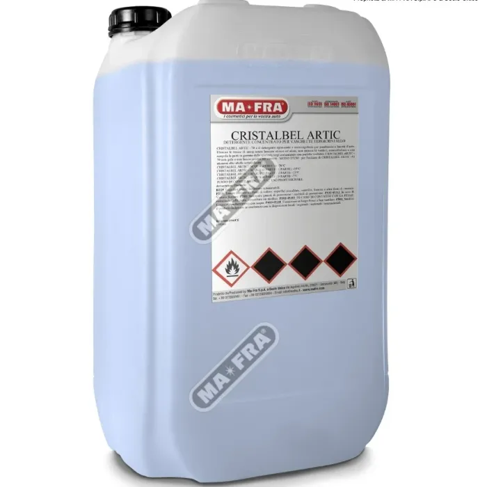 Той отстранява смога и насекомите, без да оставя ивици и ореоли, не влияе на лаковото покритие и омекотява и не напуква гумените части на чистачките, като осигурява перфектна видимост. CRISTALBEL не замръзва и не оставя следи в кръговете на устройствата за измиване на предното стъкло. Концентриран почистващ препарат против замръзване до -70°C, който обезмаслява и почиства предните и задните стъкла, като същевременно има приятен аромат.