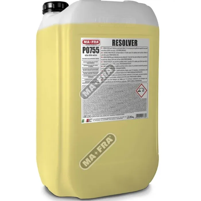 Той е особено полезен за автомобилно приложение, като гарантира, че металните компоненти остават в оптимално състояние и запазват оригиналния си блясък. Resolver също се употребява, за почистване на отлагания в клетки на автомивки. Високоефективен почистващ препарат, специално създаден за борба с варовик върху различни видове повърхности. Този препарат ефективно премахва замърсители, които могат да увредят или потъмнят външния вид на метали като неръждаема стомана, пластмаси, алуминий и поцинкован алуминий.