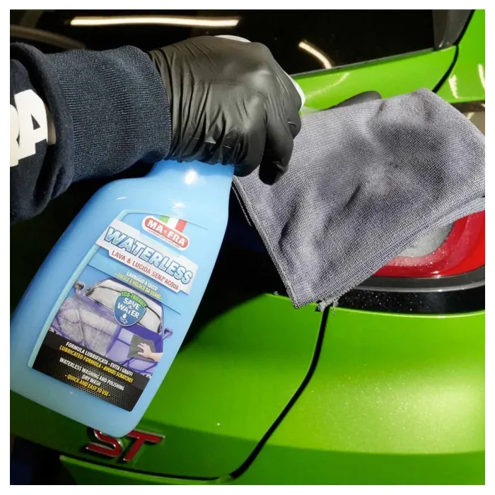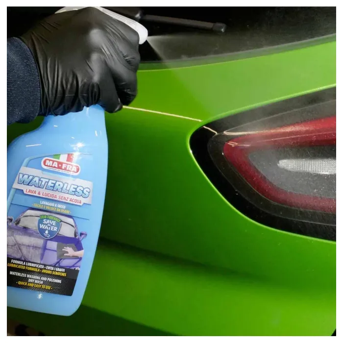 Формулата му позволява лесно почистване на всяка повърхност на автомобила, като осигурява блясък и защита, винаги с висока безопасност, без да оставя драскотини и минимизирайки въздействието върху околната среда. С Waterless можете да измиете, полирате и защитите автомобила навсякъде, без да използвате дори литър вода.
