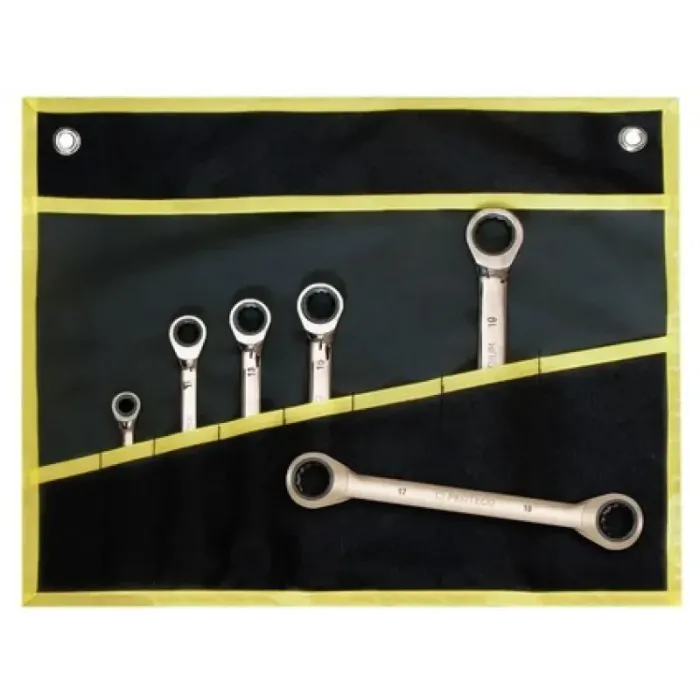 Всеки ключ от комплекта е изработен от хром-ванадиева стомана и е допълнително покрит с уникално покритие "GUNMETAL", което драстично увеличава защитата срещу корозия и евентуално износване. Тресчотката се състои от 72 закалени зъба, които позволяват стъпка на захващане само след 5 дъгови градуса. Главата на тресчотката е тънкостенна и по този начин позволява работа на труднодостъпни места. Въртящият момент на затягане отговаря на стандарта ANSI. Комплектът от 6 ключа е подходящ за употреба в автомобилната индустрия и сервизи, особено на места, където не могат да се използват предимствата на стандартната тресчотка.