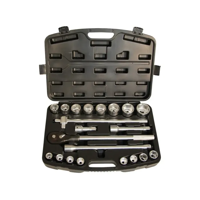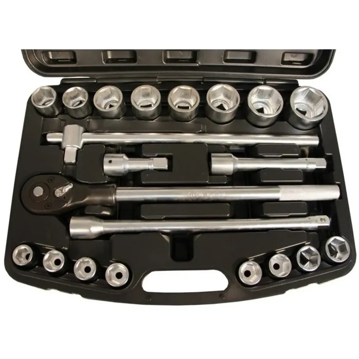 Дизайнът на главите осигурява сигурно захващане на главата на винта или гайката по цялата ѝ обиколка. Дръжката на реверсивната тресчотка е гравирана и осигурява висококачествен и сигурен захват. Това е цялостна комбинация от реверсивна тресчотка, глави, гаечен ключ и приставки. Всичко е изработено от хром-ванадиева стомана и предлага на потребителите си комфорт с възможност за различни комбинации при използване на ръчни инструменти.
