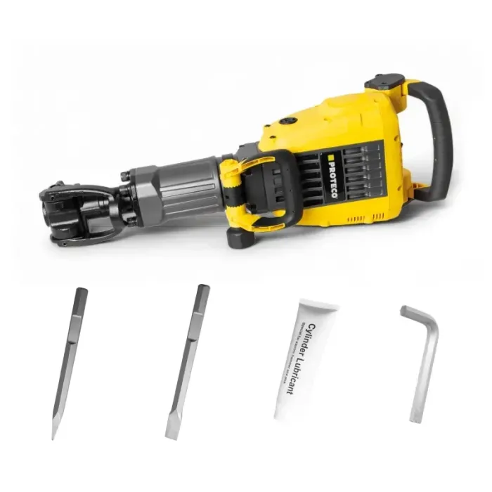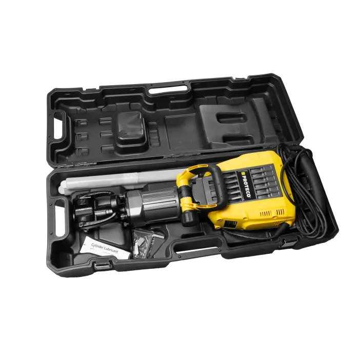 Със скорост от 1650 удара в минута, можете да вършите работата си по-ефективно и без излишни усилия. Усъвършенстваната технология за контрол на вибрациите минимизира ударите и увеличава комфорта по време на работа, което означава по-малко умора дори при продължителни периоди на употреба. Ергономичната въртяща се на 360° дръжка позволява лесно боравене и перфектен контрол на чука във всяка ситуация. Благодарение на изцяло металната конструкция, тази машина е изключително издръжлива и готова да се справи дори с най-взискателните условия на строителната площадка. Професионален инструмент, проектиран за максимална производителност, издръжливост, комфорт и надеждност. С несравнима енергия на удара от 55 джаула и мощен 1900W мотор, той може лесно да се справи с бетон, асфалт и твърда почва, което го прави идеален избор за строителство, пътно строителство и разрушаване.