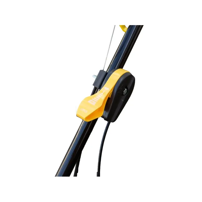 Косачката е оборудвана с контрол на скоростта, който позволява на потребителя гъвкаво да регулира скоростта на движение според своите нужди и предпочитания. Тази функция осигурява контрол върху темпото на косене и гарантира оптимална производителност върху различни видове терени. Можете безопасно и прецизно да регулирате скоростта, за да отговаря на условията на градината, което допринася за ефективността на работа и едновременно с това спестява енергия. Ако обаче трябва да косите без движение (напр. криволичене около храсти), просто отпуснете лоста за движение, което ще изключи движението.