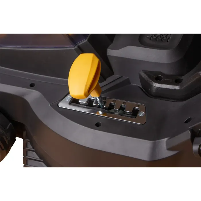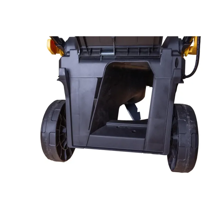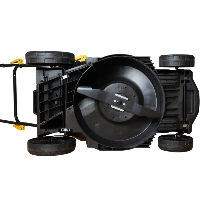 Корпусът на косачката е изработен от издръжлива и гъвкава пластмаса, която лесно издържа на големи удари вътре в барабана, но е и достатъчно лека, за да не претоварва батериите и да направи работата с машината максимално удобна. Височината на косене може лесно да се регулира с помощта на лост до 6 позиции в диапазона от 25-75 мм. Благодарение на пълното използване на 2 x 20 V батерии, косачката постига висока производителност, а също и по-дълго време на работа, отколкото при косачки с една батерия. Не само съседите ще оценят много тихата работа на косачката, която е несравнима в сравнение с бензиновите и електрическите косачки.