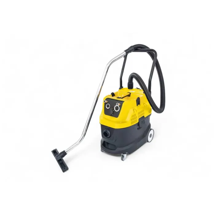 Машината е оборудвана и с контакт за електрически инструменти и интегрирани пневматични конектори (вход за компресор, изход за пневматичен инструмент), което означава, че ако захранвате инструмента през прахосмукачката, тя се включва и изключва автоматично със стартирането/спирането на свързания инструмент. Големият резервоар от 40 литра минимизира необходимостта от често изпразване. Индустриалната прахосмукачка се отличава със силна всмукателна мощност от 22 kPa и иновативна технология за автоматично почистване на филтъра, благодарение на която филтърът се самопочиства по време на почистване, осигурявайки непрекъсната максимална производителност без прекъсвания за почистване.
