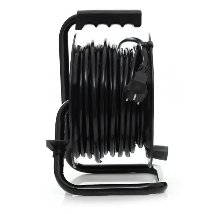 Разполага с 4 контакта за свързване на домакински уреди, косачки за трева, прахосмукачки за почистване на автомобил и много други. Удължителя притежава практична дръжка за носене и краче за отлична стабилност. Удължителя на макара е с дължина на кабела 50 м.