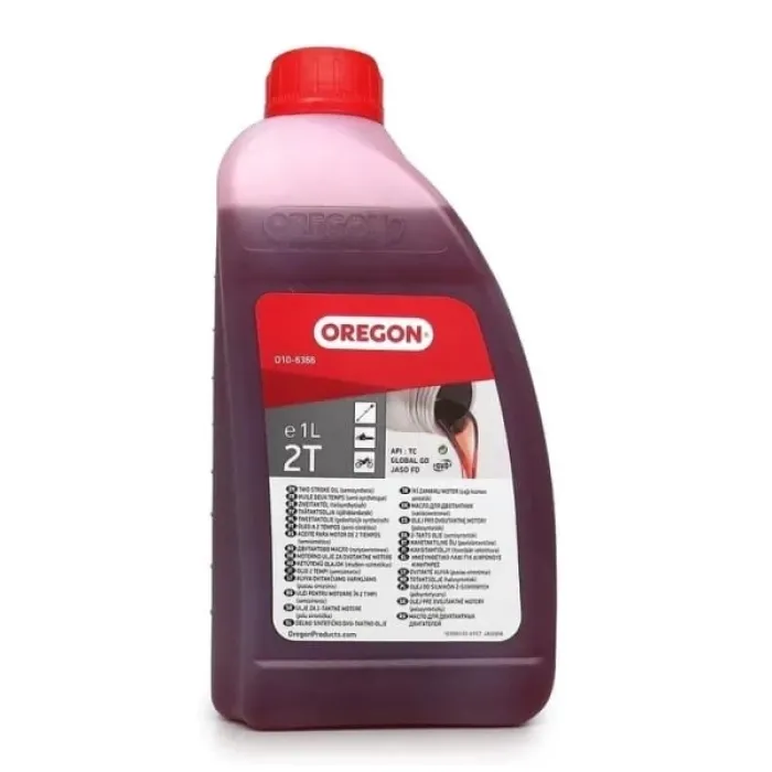 Маслото осигурява бързо и лесно стартиране на двигателя и отлични резултати по време на работа. Маслото има пречистващи и инхибиращи корозията съединения, които спомагат за избягване на стареенето на горивната смес. Двутактовото масло OREGON, червено се предлага в разфасовка от 1 л.