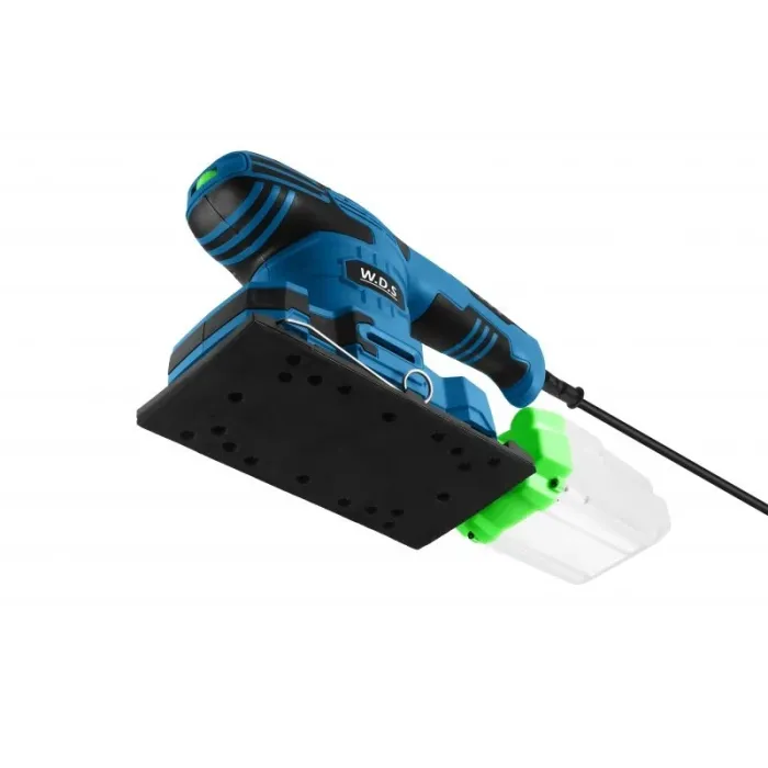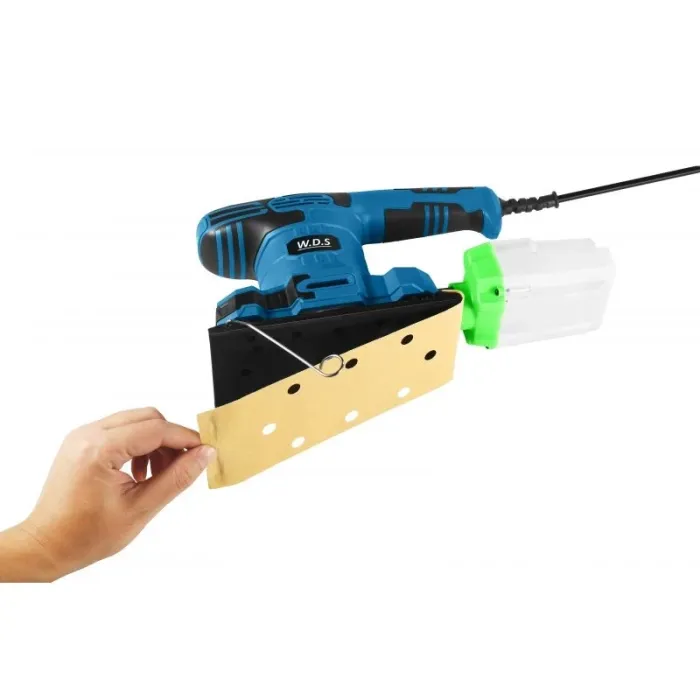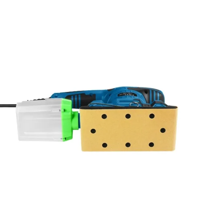 За по-добро отстраняване на прах, устройството използва шкурка с отвори, което е много по-добро решение от екстракцията само по ръбове.
