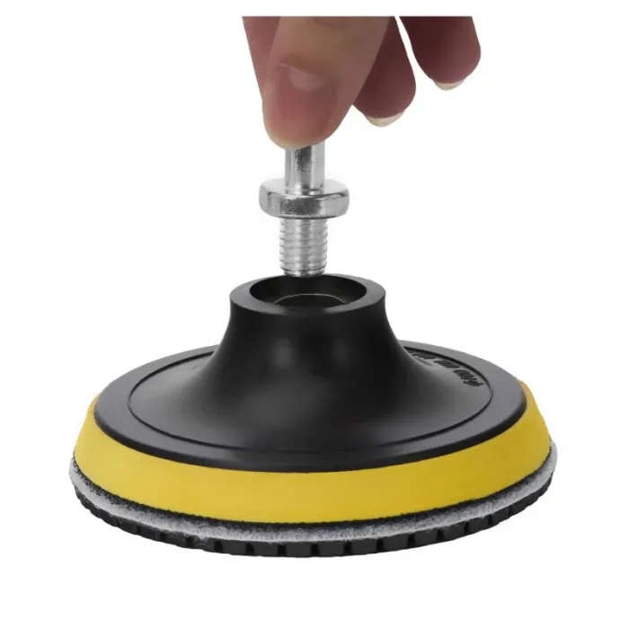 Резбова подложка + адаптер M12 - Може да се монтира директно към ъглошлайф или полираща машина, или чрез закрепване на адаптера, можете да използвате бормашина или отвертка. Препоръчваме използването на машини с променливо регулиране на скоростта.