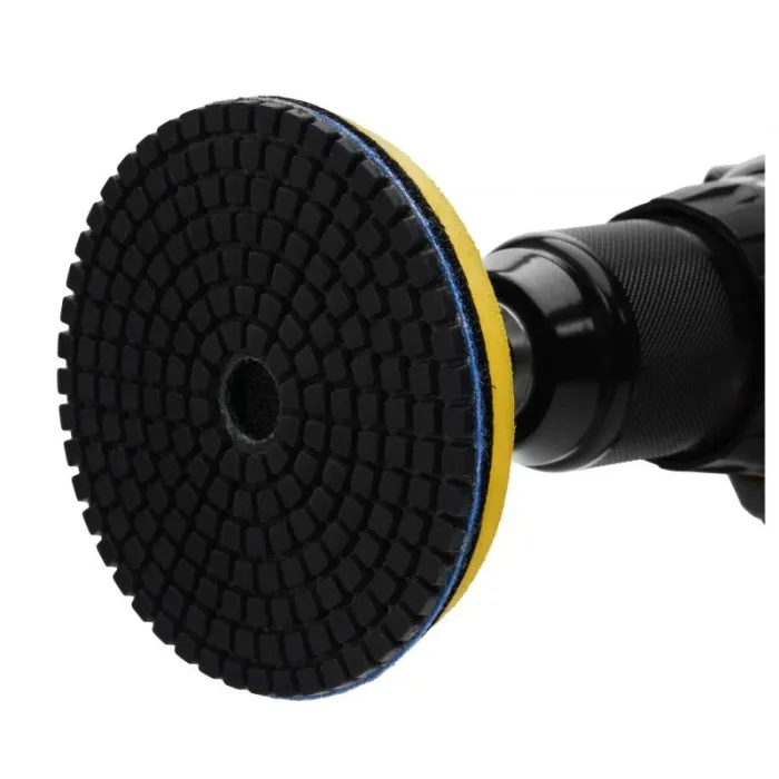 Дискът с велкро залепване осигурява прецизна и ефективна работа. Пяната поддържа прецизната обработка на полирани (шлифовани) повърхности и ръбове. Пяната стабилизира работата, като амортизира вибрациите. Здравото велкро залепване осигурява сигурно закрепване на диамантените дискове.