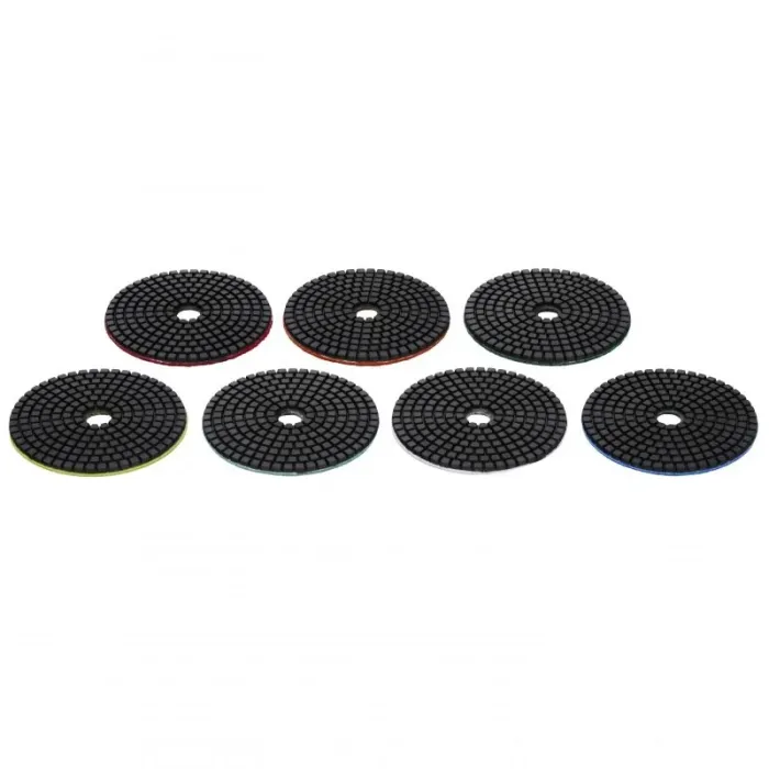Дисковете с диамантено покритие са отлични за работа върху твърди материали като порцеланови плочки, плочки, камък, гранит, мрамор и керамика. Използвайки различни зърнености, можете да придадете на материала фабрично чисто покритие. Тези дискове са отлични и за довършване на скосени ръбове на порцеланови плочки, осигурявайки перфектни разрези. Комплекта диамантени дискове благодарение на използването на най-качествени материали, ще бъде използван както от професионалисти, така и в домашна работилница. Комплектът съдържа цели 7 диска с различни градации.