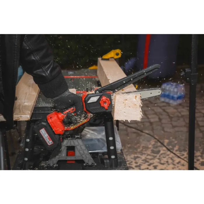 Практична и компактна, служи за подрязване, оформяне или раздробяване на дървета и храсти. Акумулаторната безчеткова кастрачка е със SDS система за безключово опъване и смяна на веригата, напрежение 20 V и дължина на шината 20 см. Разполага с безчетков мотор, гарантиращ дълъг експлоатационен живот, ниски вибрации и скорост на веригата до 5.0 м/с. Моделът е удобен за хващане благодарение на тънката дръжка с която разполага, специална мека гумирана повърхност предотвратява изплъзване на машината по време на работа.