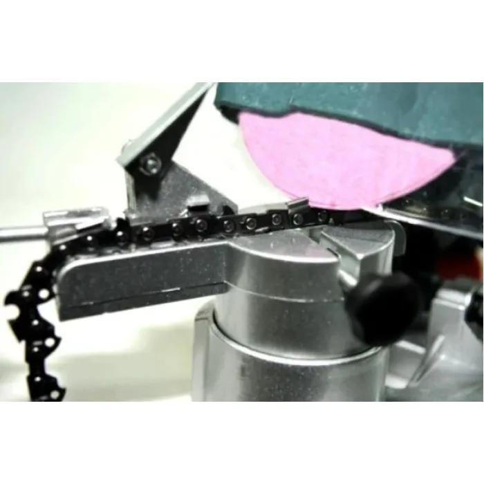 Заточването на верига за трион с електрическа машина за заточване, благодарение на високата ѝ мощност и висока скорост, гарантира оптимален и прецизен резултат. Заточваща машина, оборудвана с накланящо се менгеме, която ви позволява да заточвате вериги, без да е необходимо да променяте местата за монтаж. Менгемето може да се завърта надясно/наляво на 35 градуса. Сменяеми шлифовъчни дискове. Вграденият ограничител на дълбочината на шлайфане повишава безопасността и комфорта на оператора на устройството. Характерните черти на машината са многофункционалност на употреба, подсилена конструкция и дълъг период на безпроблемна употреба.