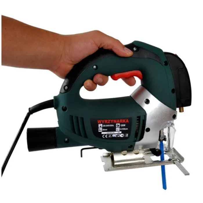 Пълният контрол по време на работа се осигурява от шестстепенно регулиране на скоростта. Връзката за прахосмукачка позволява работа без прах. Електрически прободен трион Bass Polska с мощен 1250 W мотор за дърво, метал, алуминий и стомана, за рязане на правоъгълни, кръгли и неправилни отвори, прави и неправилни линии, както и дъги и зигзаги.
