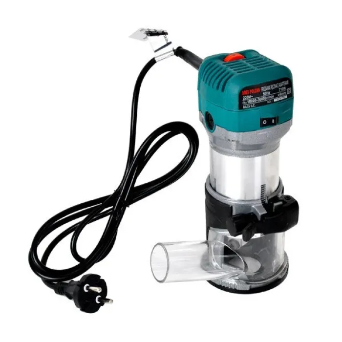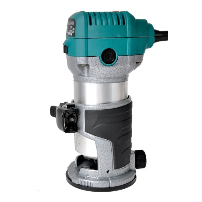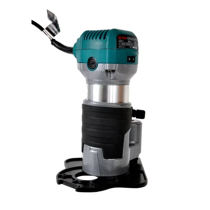 Стабилизацията по време на смяна на дръжката се осигурява от плоската горна част на корпуса и хоризонталното позициониране на кабела. Алуминиевият корпус и плавният старт на фрезата осигуряват висока точност. Сменяемите приставки позволяват разнообразни приложения. Многофункционална фреза, съвместима с инструменти 6 мм и 8 мм. Фрезовата машина е оборудвана с блокировка на държача на инструмента и регулиране на скоростта на въртене.