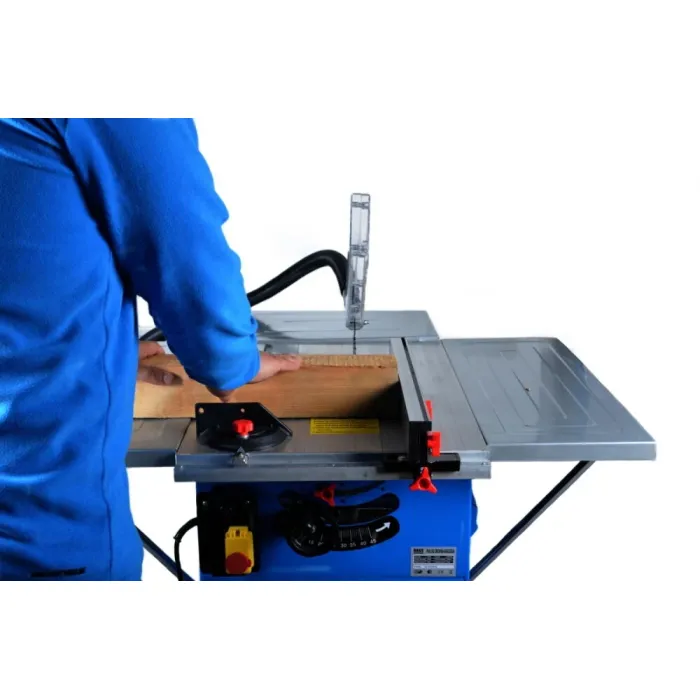 Високата скорост и широката работна маса на настолния циркуляр осигуряват ефективни и комфортни условия дори по време на непрекъсната работа. Двигателят за циркуляра гарантира стабилна работа, осигурявайки надеждно водене и обработка на материала. Снабден с паралелен, прецизно регулиран водач с милиметрова скала. Трионът за рязане на дърво осигурява комфортна работа при напречно, надлъжно рязане и рязане под ъгъл от 45°. Високата скорост гарантира ефективна динамика на рязане. Надежден циркуляр за дърво с мощност 2300 W и компактна, солидна конструкция, проектиран с особено внимание към стандартите за издръжливост. Настолният циркуляр се използва за рязане на дърво, ПДЧ, дървесни влакна, дъбови плоскости, панели и дървоподобни материали.