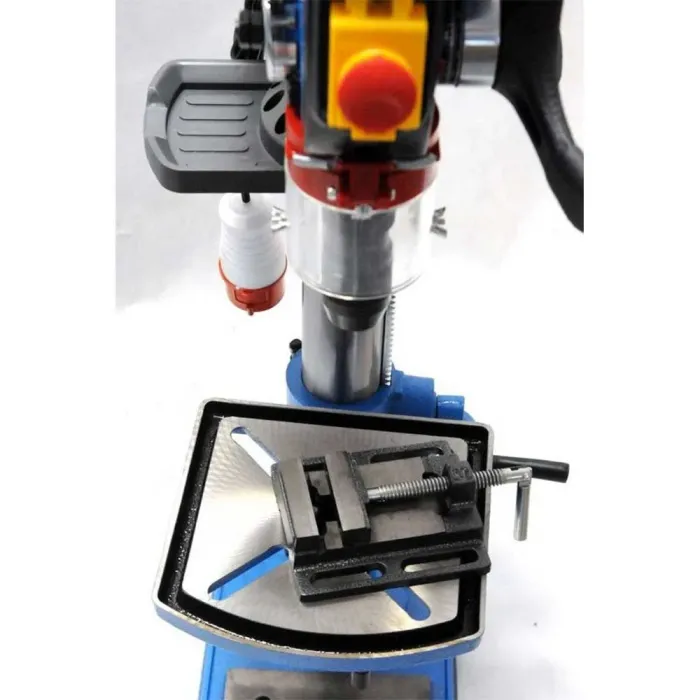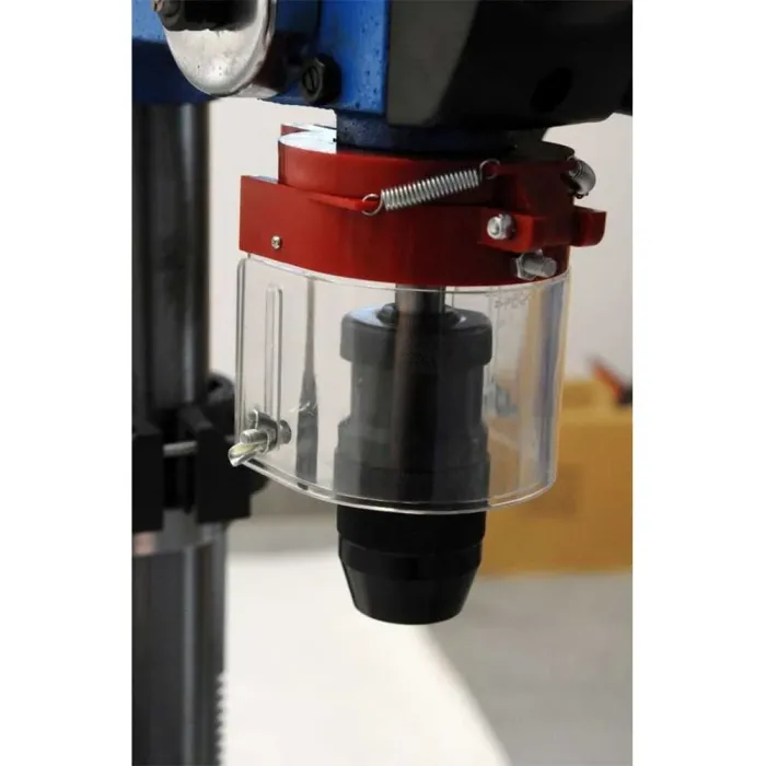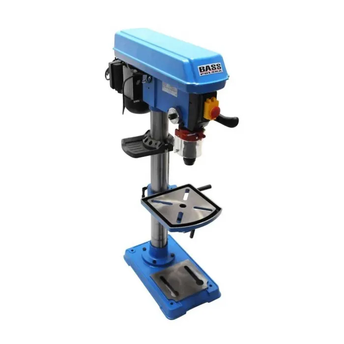 Бормашината, задвижвана с клинов ремък, с 190 - 3000 об/мин, ви позволява да регулирате параметрите на пробиването според изискванията на извършваната работа и обработвания материал. Мощният 600 W индукционен двигател, задвижващ главата, гарантира прецизно и ефикасно пробиване и стабилна работа на колонната бормашина. Настолна пробивна машина, предназначена за непрекъсната работа, за пробивни работи в цехове и промишлени предприятия с малък и среден капацитет. Бормашината Bass Polska е оборудвана с регулируема дълбочина на пробиване, плавно регулиране на височината на работния плот, защита на превключвателя, защита срещу случайно отваряне на капака и автоматичен превключвател при претоварване. Здравият и опростен дизайн на настолната бормашина Bass Polska е проектиран с оглед на стандартите за издръжливост, за да осигури безпроблемен експлоатационен живот. Характерните черти на колонната бормашина Bass Polska са непрекъсната работа при големи натоварвания, високо качество на изработка и оптимални параметри на пробиване.