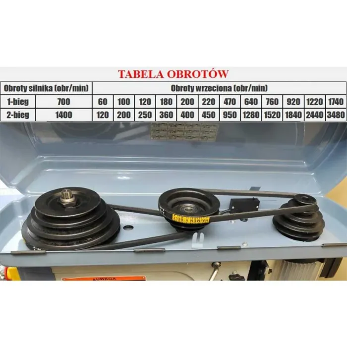 Скорост на шпиндела: Предавка 1: 60-1740 об/мин, Предавка 2: 120-3480 об/мин