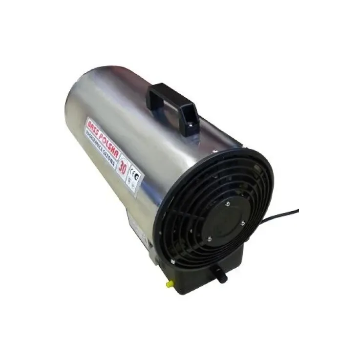 Газовият отоплител е със здрав, подсилен корпус, изработен от прахово боядисана поцинкована стомана. Дизайнът на отоплителя позволява равномерно разпределение на топлия въздух и насочването му към всяко желано място. Това ефикасно и икономично устройство за отопление на помещения постига висока ефективност с нисък разход на газ. Компактният размер и ниското тегло на въздухоотвода позволяват бързо транспортиране и преместване. Отличителните характеристики на газовия въздухоотвод включват готовност за работа, регулируема топлинна мощност, преносимост и лекота на работа и поддръжка. Газов калорифер за бързо отопление на средни до големи помещения, подходящ за отопление и допълване на апартаменти, офиси, сушилни, гаражи, работилници и др. Този отоплител се захранва с пропан-бутан и е оборудван с регулатор и газов маркуч.