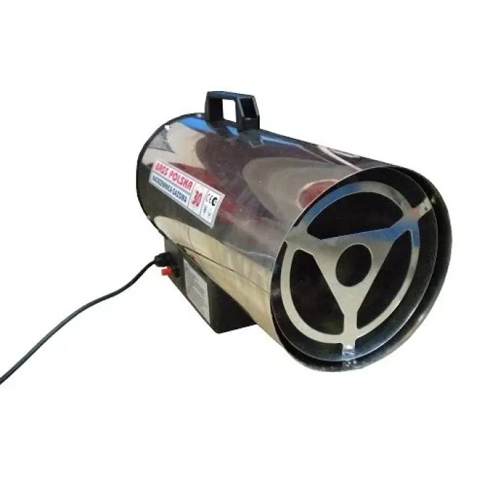 Газовият отоплител е със здрав, подсилен корпус, изработен от прахово боядисана поцинкована стомана. Дизайнът на отоплителя позволява равномерно разпределение на топлия въздух и насочването му към всяко желано място. Това ефикасно и икономично устройство за отопление на помещения постига висока ефективност с нисък разход на газ. Компактният размер и ниското тегло на въздухоотвода позволяват бързо транспортиране и преместване. Отличителните характеристики на газовия въздухоотвод включват готовност за работа, регулируема топлинна мощност, преносимост и лекота на работа и поддръжка. Газов калорифер за бързо отопление на средни до големи помещения, подходящ за отопление и допълване на апартаменти, офиси, сушилни, гаражи, работилници и др. Този отоплител се захранва с пропан-бутан и е оборудван с регулатор и газов маркуч.