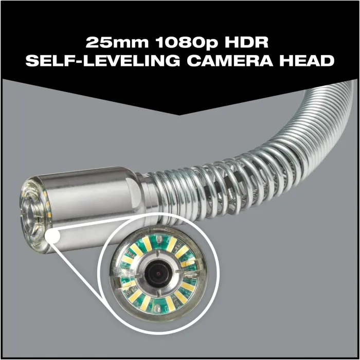 Главите на камерите за откриване на наклон осигуряват екранно показване на наклона на тръбата. Вградена сонда за лесно проследяване: 512 Hz, 640 Hz, 33 kHz за употреба с всички обичайни устройства за проследяване. Вградено проследяване на линията за локализиране на буталото. Напълно затворени бобини за по-добра защита от замърсяване. Презрамки за рамо за по-лесно пренасяне. Модулната система за камери ви предлага възможността да адаптирате камерата към вашите специфични изисквания на строителната площадка. Новата 25-милиметрова HDR (High Dynamic Range) камера гарантира по-добри изображения при условия на слаба светлина.