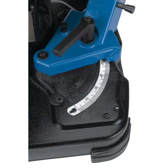 Машината включва безстепенно регулиране на скоростта, ръчен ограничител за дължина на рязане и биметална лента в комплекта. Благодарение на ниското си тегло от 20.5 кг и компактни размери, тя е лесна за транспортиране и удобна за работа в ограничени пространства.
